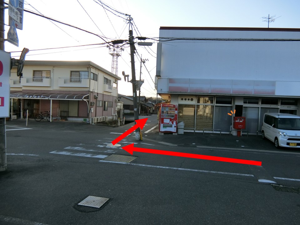 左手のパン屋さんと右手のポストが目印です。