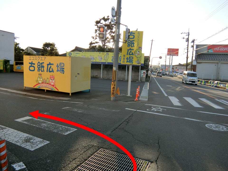 ワークマン岡山海吉店を通り過ぎた後、左手に古紙広場が見えます。
