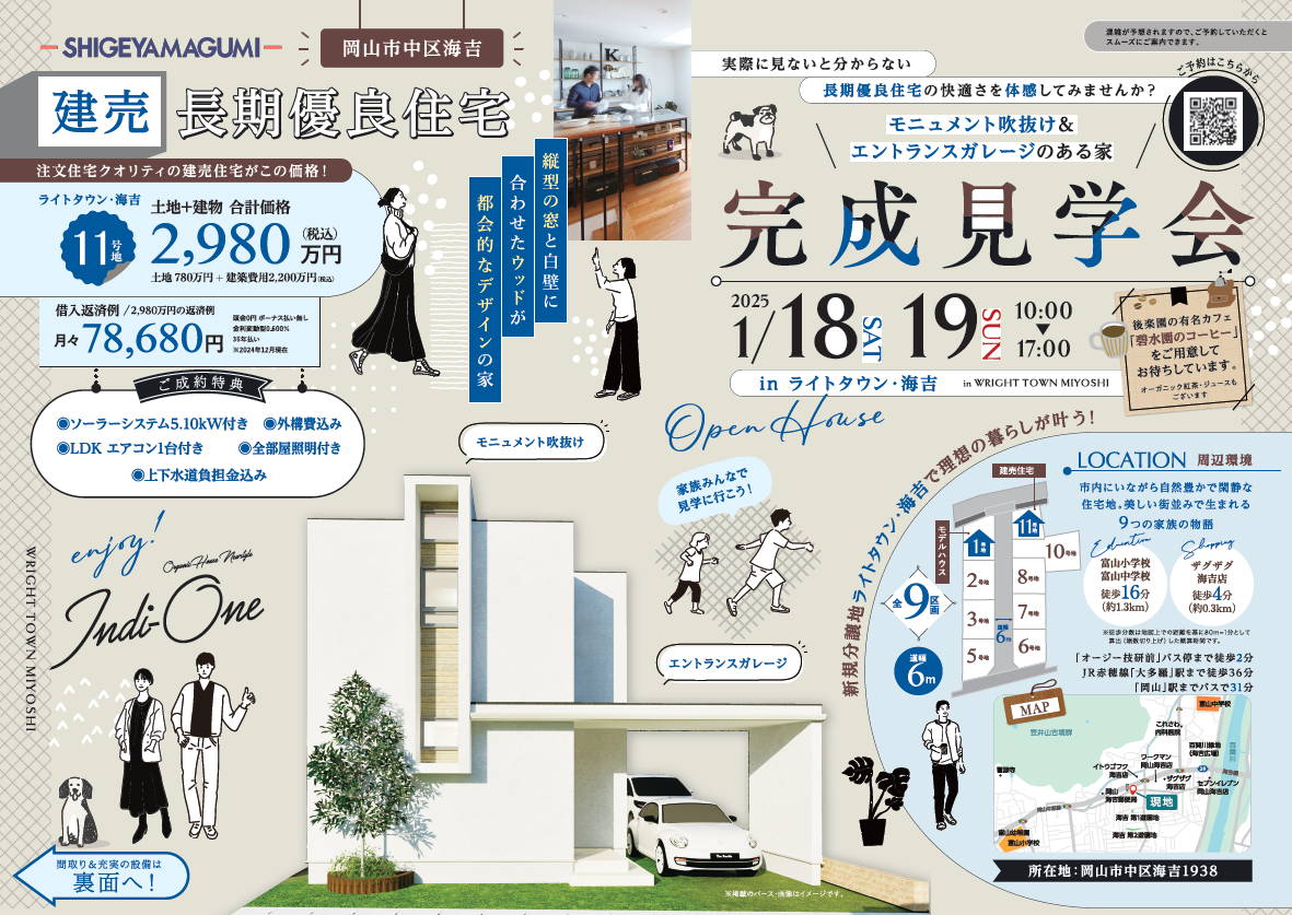 【1/18(土)~19(日)】『インディワン』建売住宅完成見学会を開催します!inライトタウン・海吉