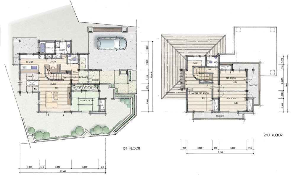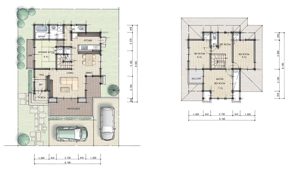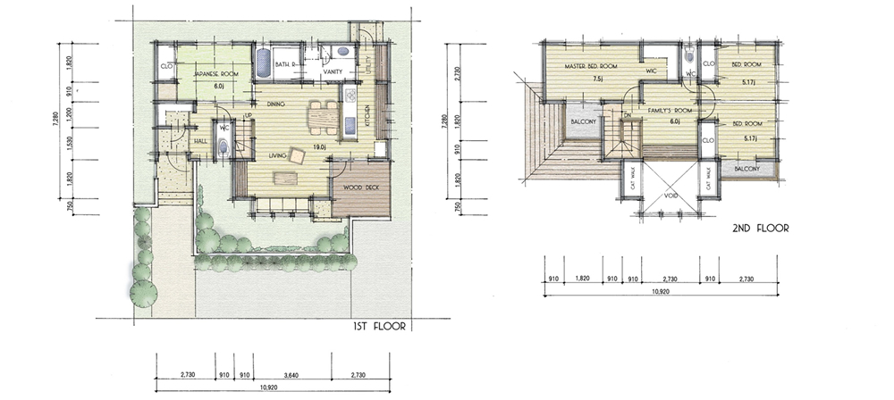 南東の角地の立地条件を活かし、光のあたたかさ、風のさわやかさ感じる、健やかなプラン。