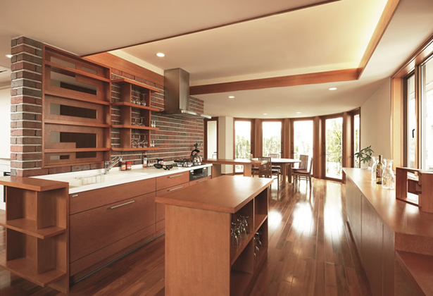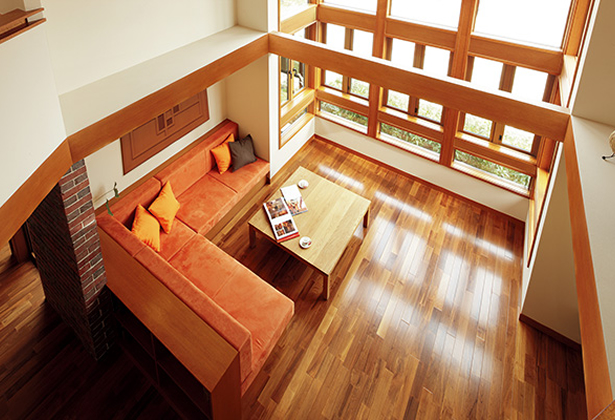 優しく包み込むようなたたずまいの軒。住む人の心を開放する吹き抜け。 リビングを中心に家族がつながり、自然と一体化するかのようなガラス壁。 伝統や建築様式にとらわれない、のびやかで、おおらかでありながらも調和のとれた居心地の良い空間。 大地に抱かれて暮らすような温もりと開放感にあふれる佇まいです。