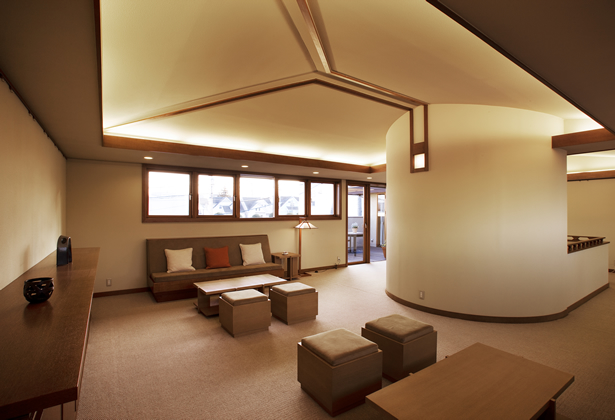 ライトの愛弟子であるジョン・ラッタンバリーによって、日本の住宅や住まい方に調和するよう、現代の技術を取り入れて設計されました。 家族を育む空間がある「自然の家」という顔も持っています。