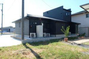 倉敷市 39.8坪 3LDK 2024年10月25日 新婚のM様ご夫婦。土地探しからスタートしました。 カスタマイズされた使い勝手のよい玄関ホール。 車好きのご主人のご要望により、広い外構とガレージも建物に合わせシックでモダンなモノトーンに統一。 内装は奥様のご希望で明るい白とインビジブルな床色を基調に、 ところどころでブラックを効かせた調和のとれたカラー配分となりました。