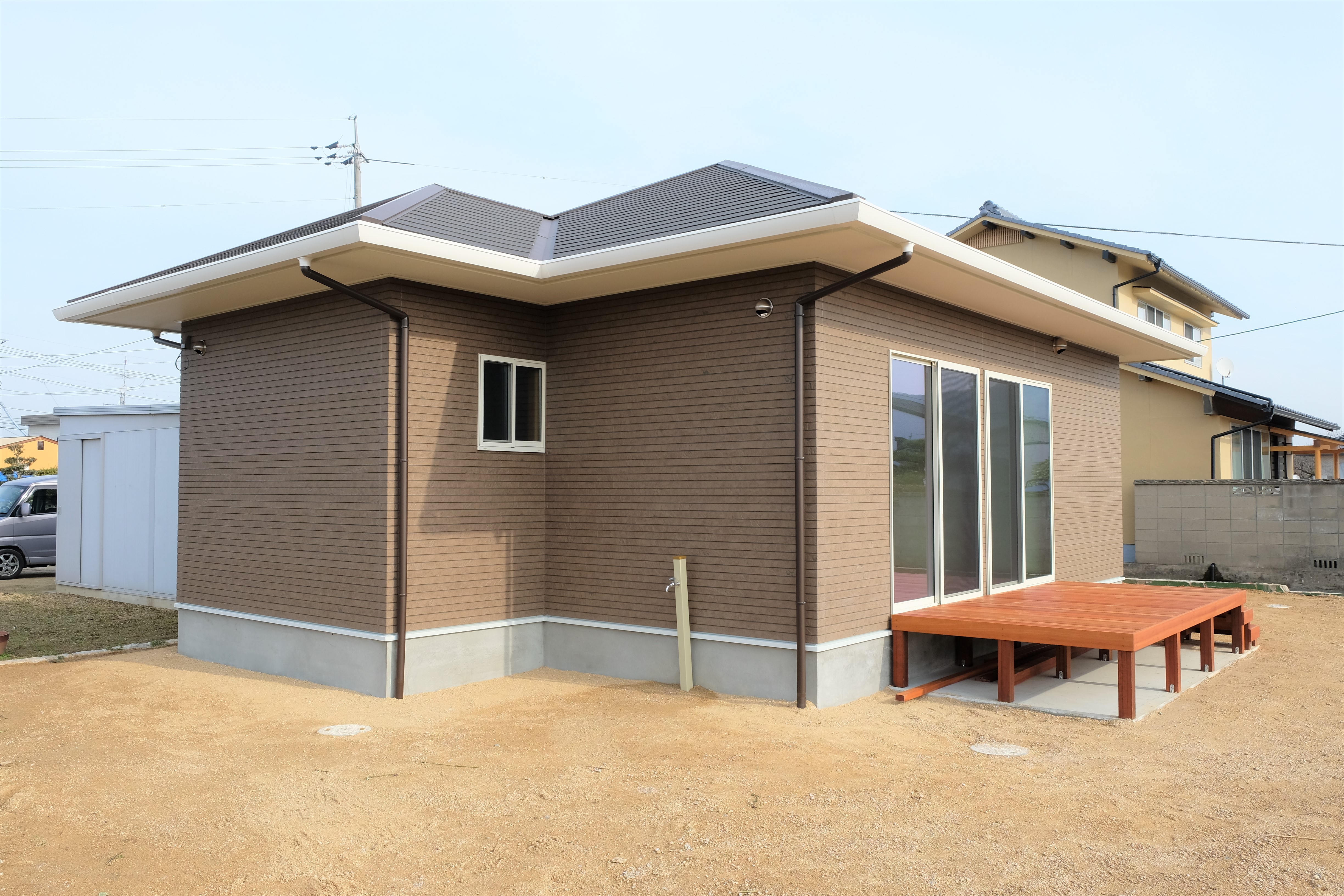 倉敷市 O様 2021年02月09日 倉敷市 O様 ご夫婦お二人の為の終の棲家として快適に過ごしていただけるように、少し足の不自由なご主人様の動線を考慮しながら、建具の形状(開き戸、引き戸等)や場所を打合せして決めていきました。リビング前に大きく広がるウッドデッキでの日向ぼっこを楽しみにされています。