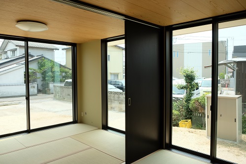 岡山市K様 2019年09月07日 岡山市K様 【シリーズ-SHIGEYAMAGUMI-Original】住み継がれる家として、住宅性能の高さだけではなく、水平ラインを重視した安定感と日本らしい入母屋造りの屋根が安心感を備え落ち着いた外観。長く延びた軒が建物を包み込み光の高窓(クリアストーリー)が昼はプライバシーを確保しつつも照明を必要としない、夜は懐の深い空間を作り出している。