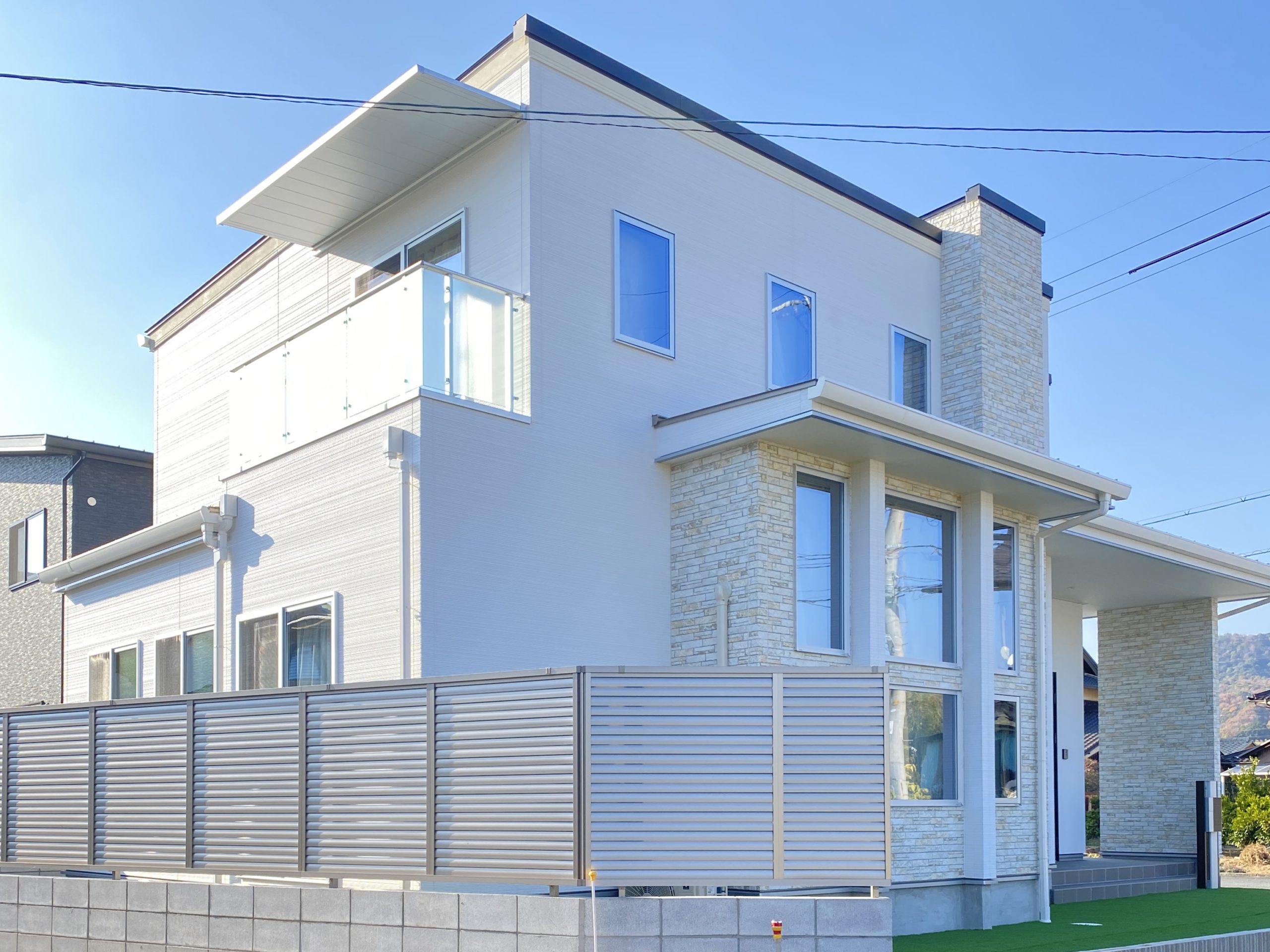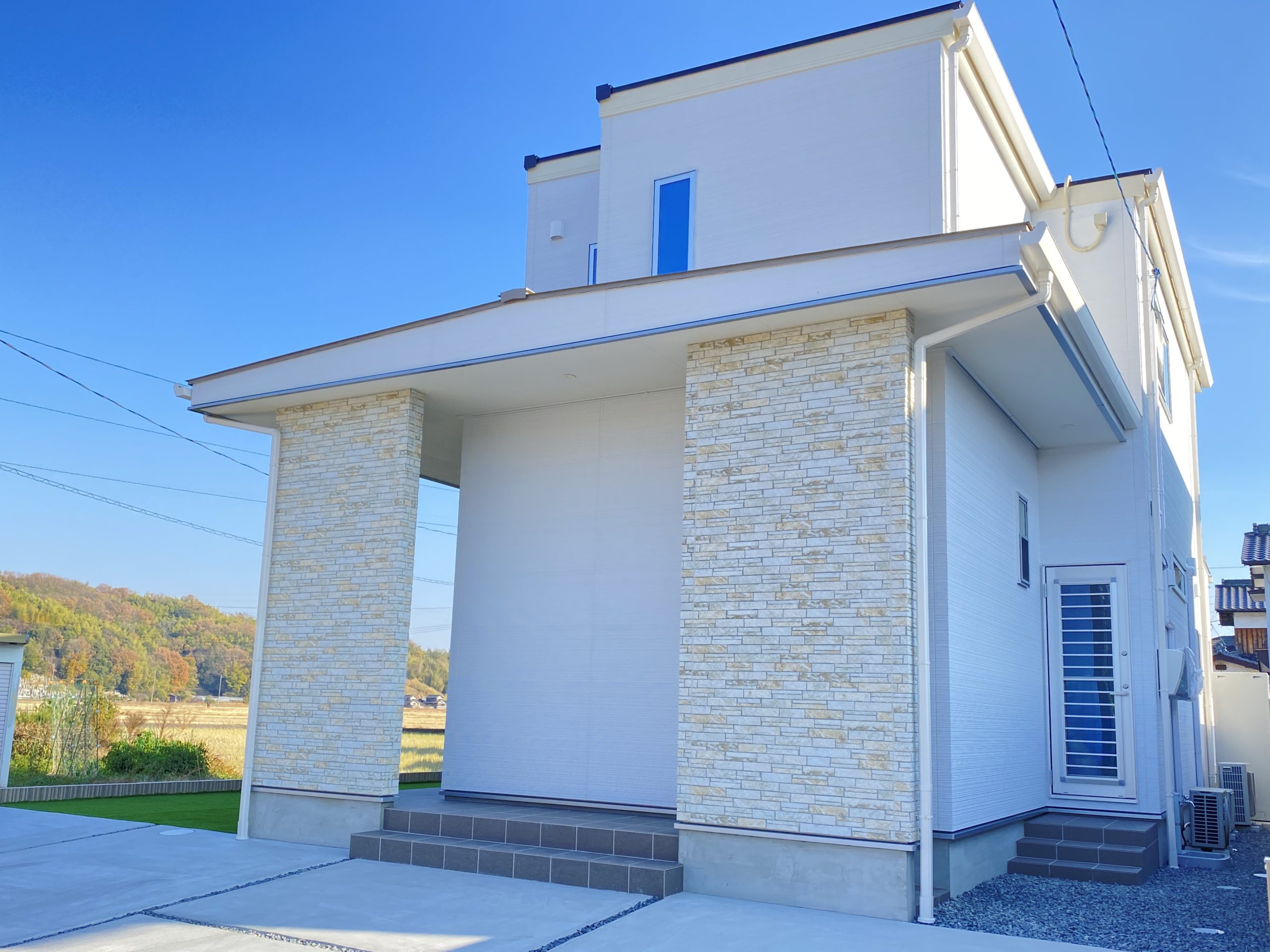 浅口市 36坪 4LDK 2023年12月08日 浅口市 36坪 4LDK 何度も打合せを重ね、お客様のこだわりの詰まった一軒家 窓が印象的でリビングは明るく開放感のある空間になります 白を基調とした外観もおしゃれで素敵です