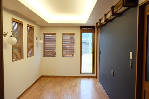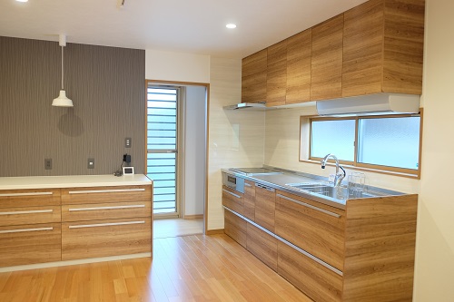 笠岡市T様 2019年09月06日 笠岡市T様 【シリーズOACS】幹線道路に面した南北に長い敷地に合わせて建築。天井の高いリビングで伸びやかにくつろぎたいというお施主様のご要望で、ダイニングキッチンと一続きになったリビングは、一段下げたスペースとしました。フローリングの材質、建具の色等、一つ一つ打合せを重ねながら決めていただきました。