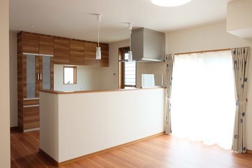総社市U様 2019年10月12日 総社市U様 【シリーズOACS】太陽光発電システムを搭載し、災害時に使用可能なコンセントをリビングに設置しました。キッチンは内部までステンレス製で、大型の背面収納もデザインを統一した奥様のお気に入りで、広々1.25坪のお風呂はご主人様が選択してくださいました。ダイニングキッチンとリビングの位置関係が、ご家族の快適な距離感を保てる配置となっています。