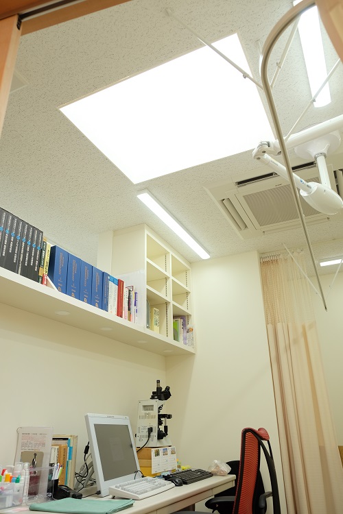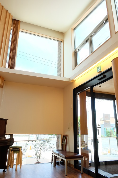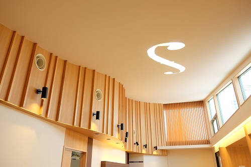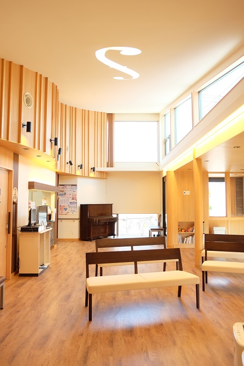 藤田皮膚科医院様 2019年10月14日 医療施設兼住宅 藤田皮膚科医院様 【ARCHITECTS STUDIO JAPAN岡山バラ園スタジオ】株式会社 新谷建築設計事務所様の設計、茂山組が施工を担当させていただきました。待合室は、バイオリン奏者でもある院長先生のご要望で、定期的に地域の方々を招いて演奏会を開催される為、音響効果を考えた空間の工夫や、仕上げ材の選定に時間を費やしました。天井面のトップライトは、バイオリン本体を模して、「f」の切り文字を抜き、柔らかな光が降り注いできています。