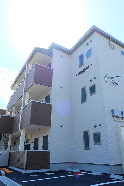 集合住宅GRACIA Y様 2019年10月12日 集合住宅GRACIA Y様 【シリーズ-SHIGEYAMAGUMI-Original】3階建て鉄骨S造のアパート。9室ある室内は、女性向けにスッキリとした内装に仕上がったが、予想外に男性にも好評のようでオープン時には満室となった。屋根には太陽光パネルを備え、防犯対策やネット環境も万全で交通アクセスも良いなど、お施主様の着眼点のすばらしさが功を奏したと思われる。